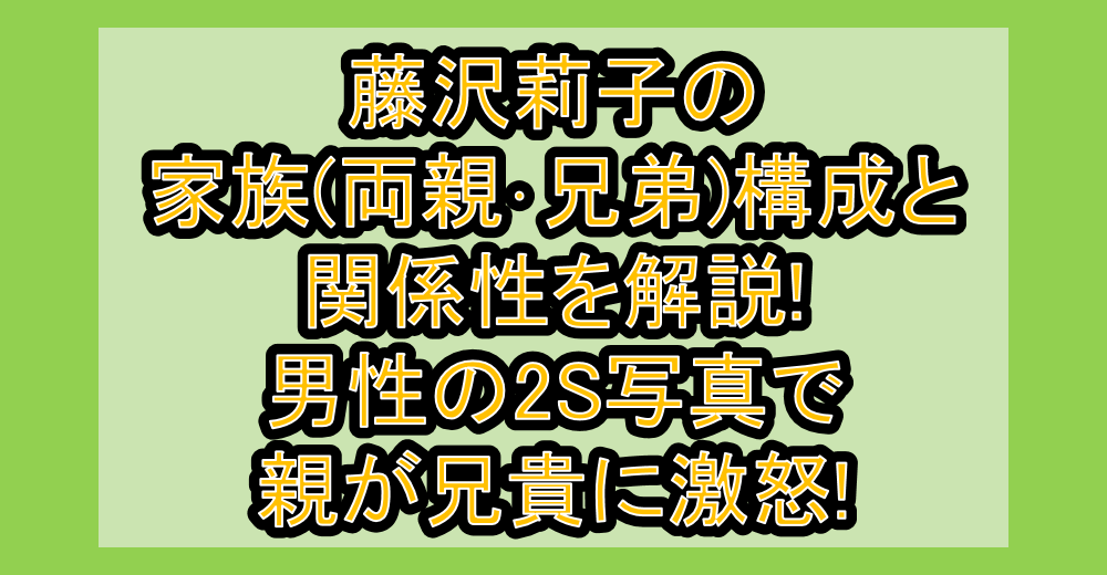 藤沢莉子の家族(両親・兄弟)構成と関係性を解説!男性の2S写真で親が兄貴に激怒! 公開日:2026年2月21日 音楽 藤沢莉子さんと男性の2S写真拡散でよくない話題となってしまいましたが、兄貴との仲良しツーショット写真だったと確認されて良かったです。 そんな、藤沢莉子さんは兄貴とのツーショットだったりと、両親を含めた家族と […] 続きを読む