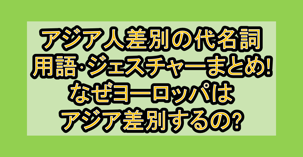 アジア人差別の代名詞・用語・ジェスチャーまとめ!なぜヨーロッパはアジア差別するの? 公開日:2025年12月16日 知恵袋 ミス・フィンランドがつり目のジェスチャーをするアジア差別が話題になっており、そのようなアジア差別がヨーロッパ起源だったりしているようです。 そんな、アジア人差別の代名詞・用語・ジェスチャーにはどういった物が […] 続きを読む