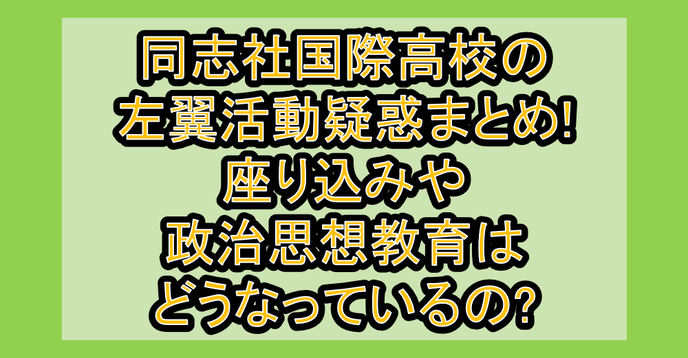 同志社国際高校の左翼活動疑惑まとめ!座り込みや政治思想教育はどうなっているの? 公開日:2026年3月28日 その他 辺野古沖転覆事故で同志社国際高校が話題になっていますが、他にも座り込み参加要請など左翼みたいな活動を生徒に要請していたことも発覚して話題になりました。 そんな同志社国際高校で言われている左翼みたいな活動とは […] 続きを読む